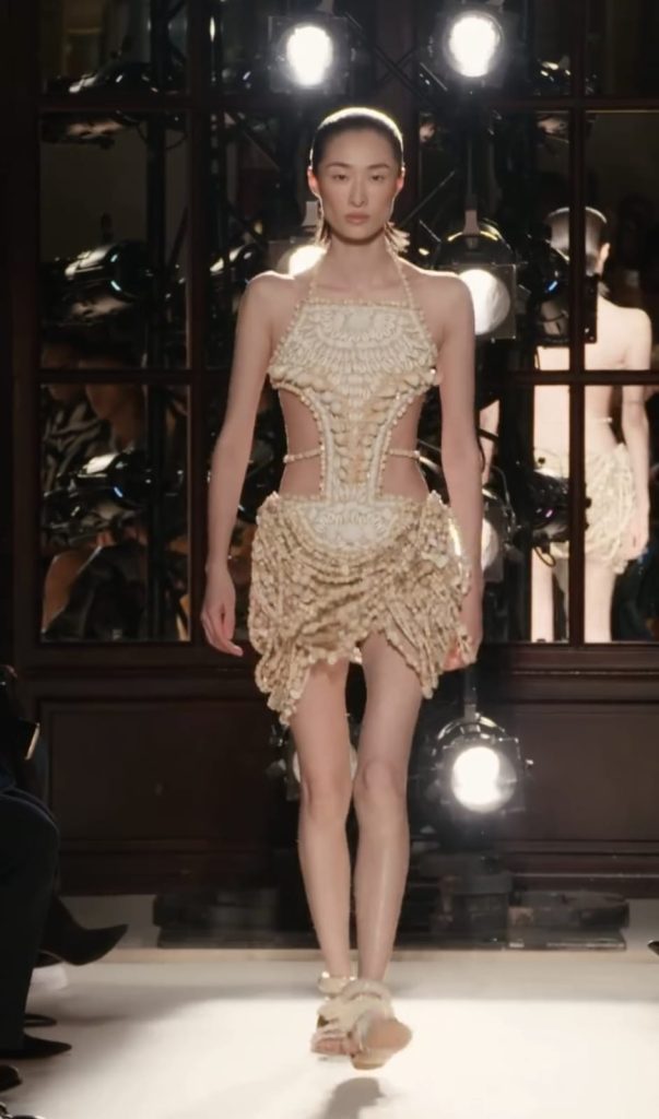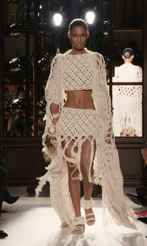 Na temporada Primavera-Verão 2026, Balmain apresenta uma coleção que revela uma faceta mais artesanal e solar sob o comando de Olivier Rousteing. Com crochês delicados, vestidos de contas, aplicações de búzios e bordados manuais, a grife aposta em uma estética praiana e tátil, afastando-se da opulência tradicional para abraçar uma elegância mais leve e íntima. A coleção reflete uma Balmain que dialoga com a natureza e o toque, trazendo frescor e inovação para o universo do luxo contemporâneo.
