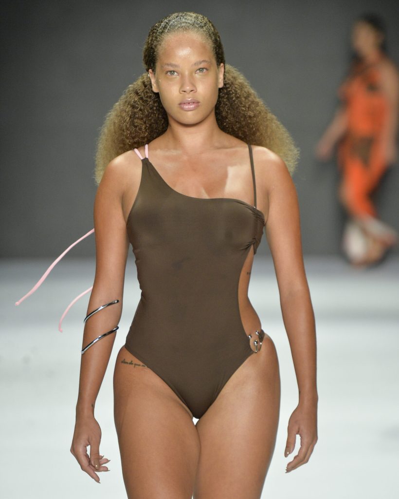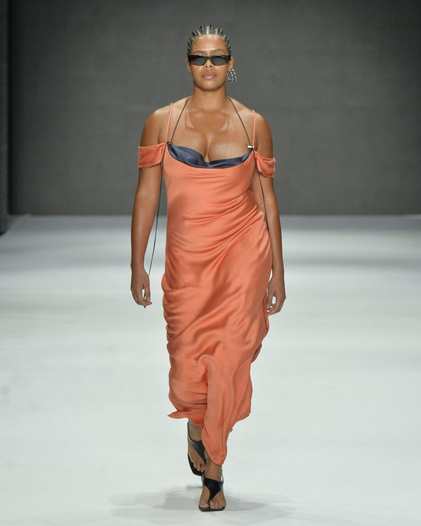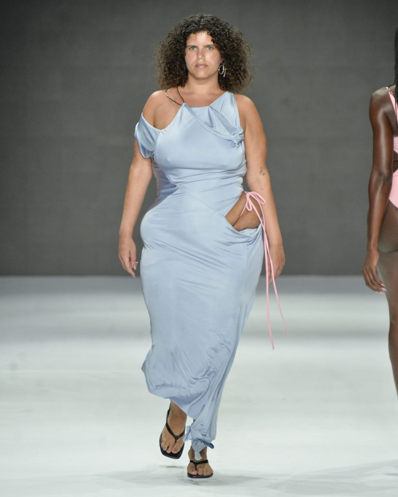 A designer brasileira Karoline Vitto construiu sua marca a partir de uma investigação muito própria sobre o corpo feminino, desenvolvendo, entre Londres e o Brasil, peças que combinam modelagem escultural, inclusão de tamanhos e experimentação de materiais.