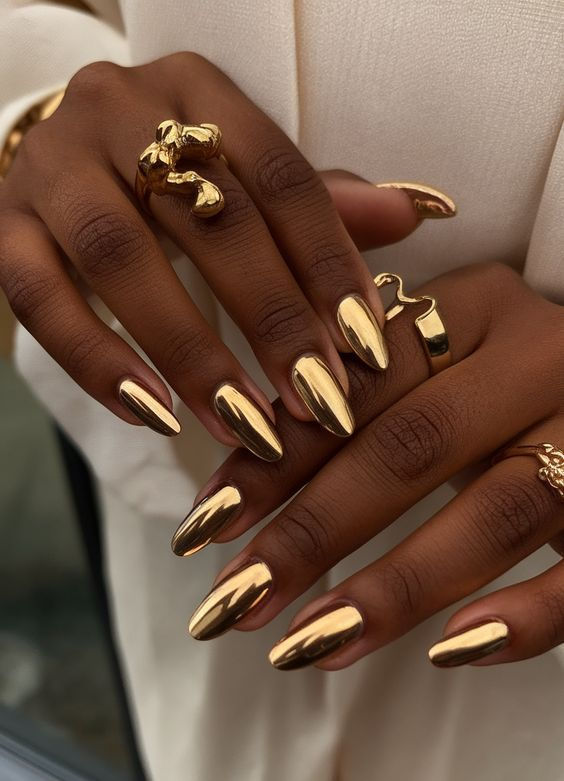 O brilho metálico surge como símbolo de modernidade, adicionando um toque tecnológico e ousado às produções. As cores cromadas equilibram o artesanal com uma visão futurista da moda.