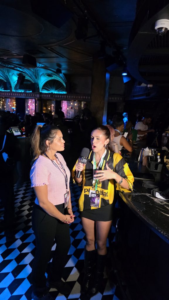 Diane Vaor, diretora de PR e cofundadora da Runway 7 Fashion, e a jornalista Gabriela Chambarelli em entrevista para o portal jornalístico IFA MODA | foto: Divulgação